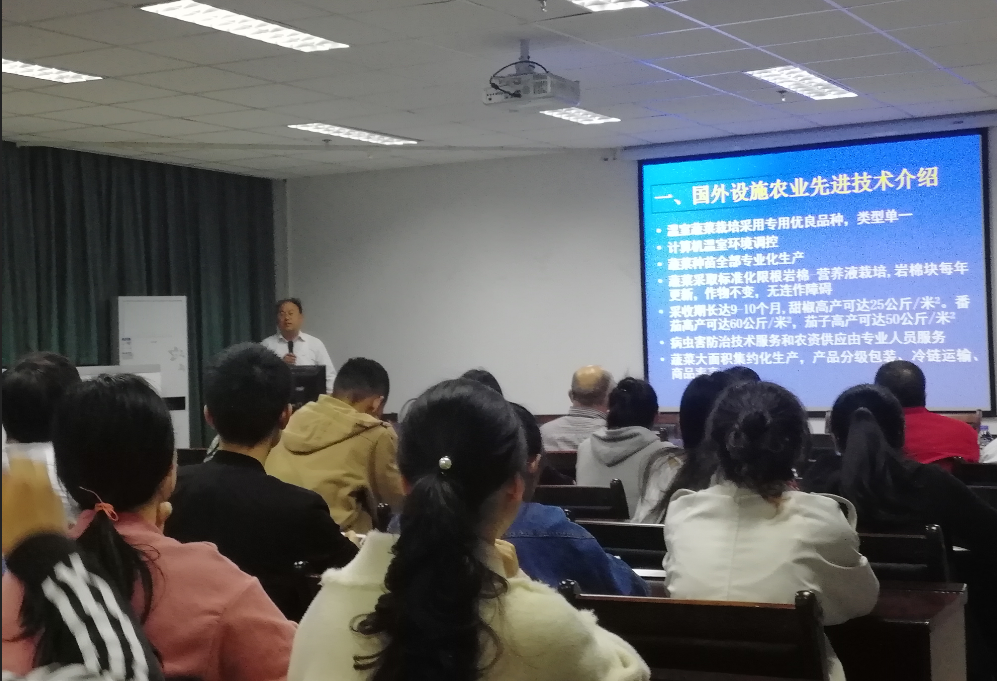 贺超兴研究员以《资源高效利用的设施蔬菜栽培新技术》为题介绍了国内外设施园艺先进实用技术、我国设施园艺产业的发展现状、栽培特点、以及资源高效利用新技术等。就目前我国蔬菜生产导致肥料利用效率下降、产量较低、土传病害加重等问题,在报告中他重点介绍了设施有机土栽培技术、肥水气一体化技术、专家系统以及土壤消毒等资源高效利用技术在实现设施蔬菜绿色高效生产,维持生态环境协调可持续发展等方面的内容。会上,他还就设施蔬菜栽培与管理、提质增效等问题进行了展开介绍。