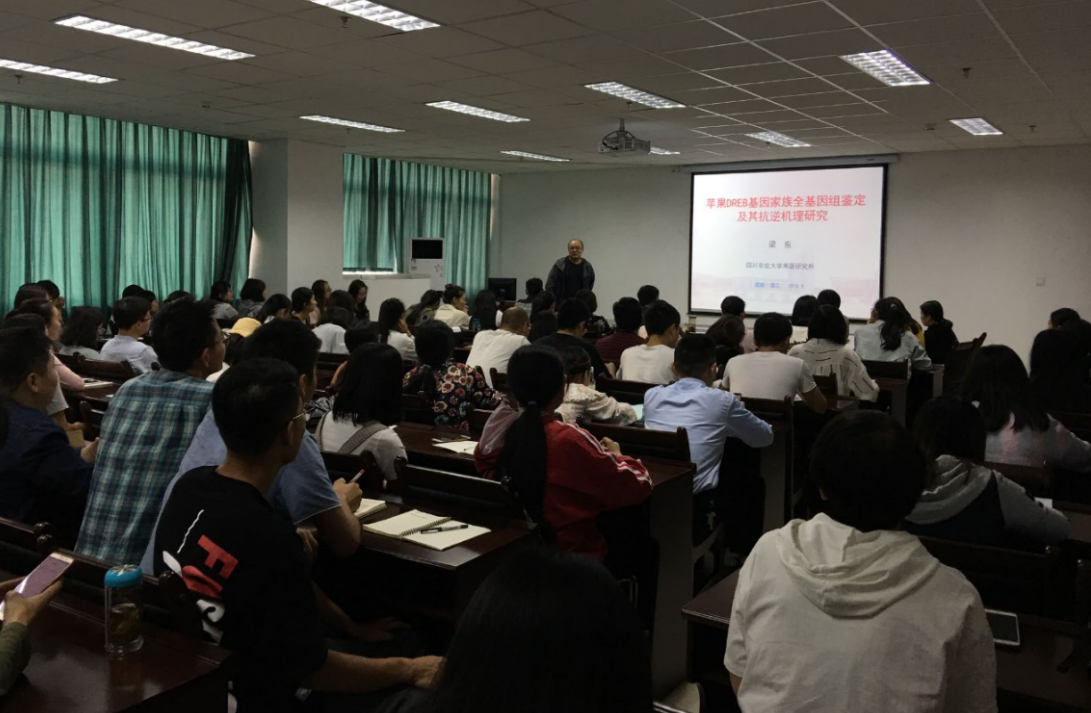 果蔬研究所青年教师赖云松副研究员和梁东副教授分别为师生带来了他们主持的国家自然科学基金(青年)主题为《黄瓜性别表达的环境调控》和《苹果DREB基因家族鉴定及其抗逆机理研究》的学术报告。