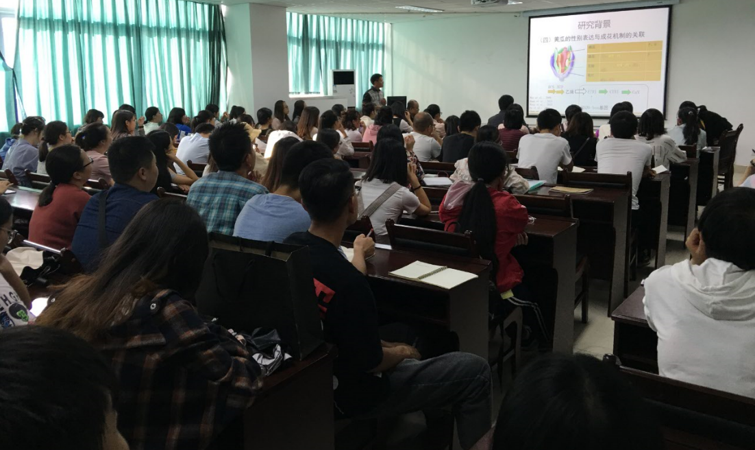 赖云松博士毕业于日本北海道大学,他从“黄瓜种质耐寒特性与DNA甲基化响应关系的研究”出发,结合田间调查总结了黄瓜种质资源的性别表达环境调控规律,着重介绍了黄瓜性别表达环境调控的表观遗传学机制,比较了光照和温度对黄瓜不同的调控机理。报告会上,赖云松博士还讲述了他在本科研期间发现的许多有趣科研现象,请坚持研究。
