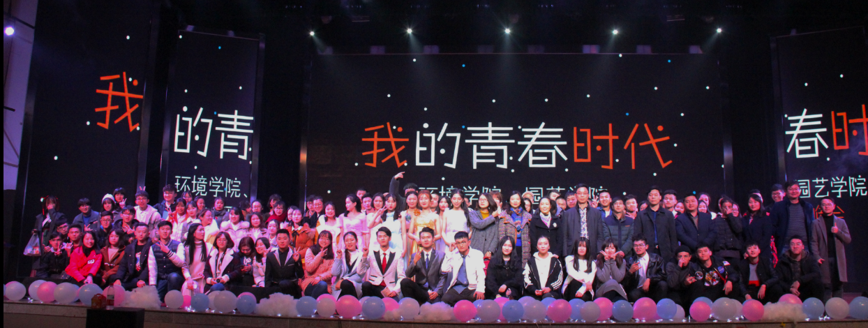 展示了各国语言的美妙;小品《一念天堂》展现了小偷人性的一面,救了别人却牺牲了自己;歌曲串烧《我们的青春》带领现场领略了悠扬的口风琴、热情的尤克里里以及浪漫的小情歌;歌舞《时间都去哪了》让现场观众不禁回想起过去的时光。期间,父母的祝福视频和屏幕上展示的一张张照片更是让观众潸然泪下,想到了把自己含辛茹苦养大的父母;《琴鸣曲扬品香茗》展示了茶艺的独特魅力,伴随着清幽的古筝,品一壶沁人心脾的清茶;《川多莉亚的秘密》以走秀的形式将“‘废’比寻常”大赛中的优秀作品和以及各种蔬菜水果搭配华丽的服装让人大饱眼福,垃圾袋服装、香蕉挂饰、蔬菜捧花、幸福的小雏菊等展示了川农学子的创新能力,两院员工会成员携手熊本熊和大白的出现更是体现了两院深厚的友谊。