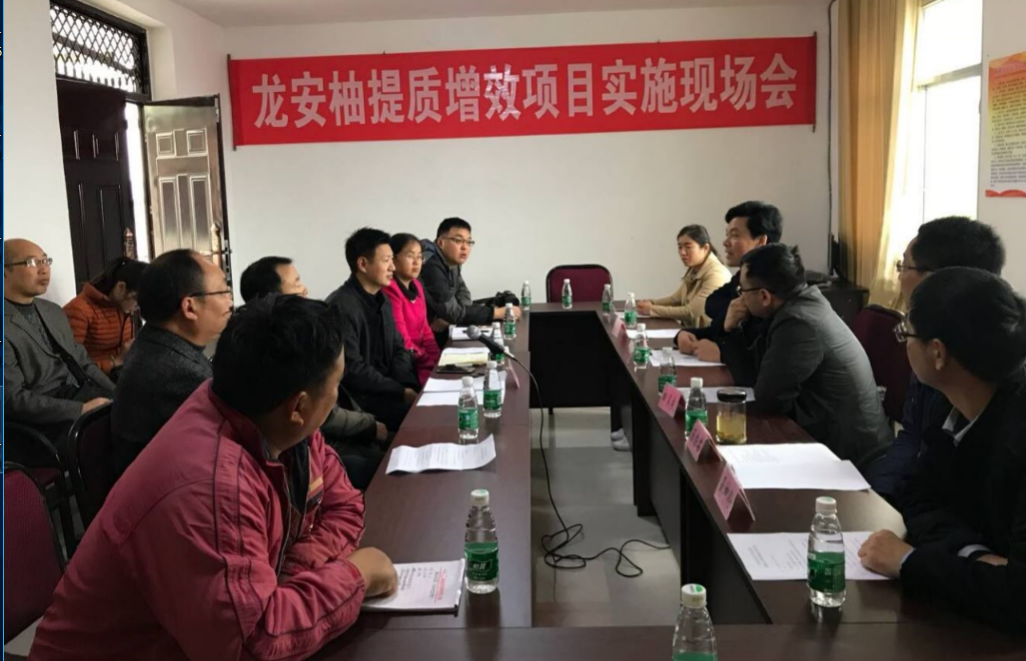 11月20日,龙安柚提质增效项目现场会在广安市前锋区虎城镇洪桥村举行。前锋区政协副主席彭朝林,前锋区农业局局长赵云华,公司农发院副经理田孟良,哈哈体育经理汤浩茹、党委书记聂坤伦、副经理汪志辉,省农业厅经作处副科长、高级农艺师祝进,省农业厅高级农艺师党受光及前锋区扶贫与移民局、虎城镇、洪桥村等相关单位负责人和龙安柚种植户共40余人参加会议。
