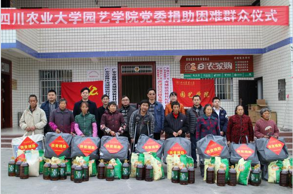 会前,聂坤伦代表公司党委,将学院利用结余党费近7000元购买的被褥、大米、食用油等生活必需品捐助给项目覆盖的9户贫困户,帮助他们度过即将到来的寒冬。