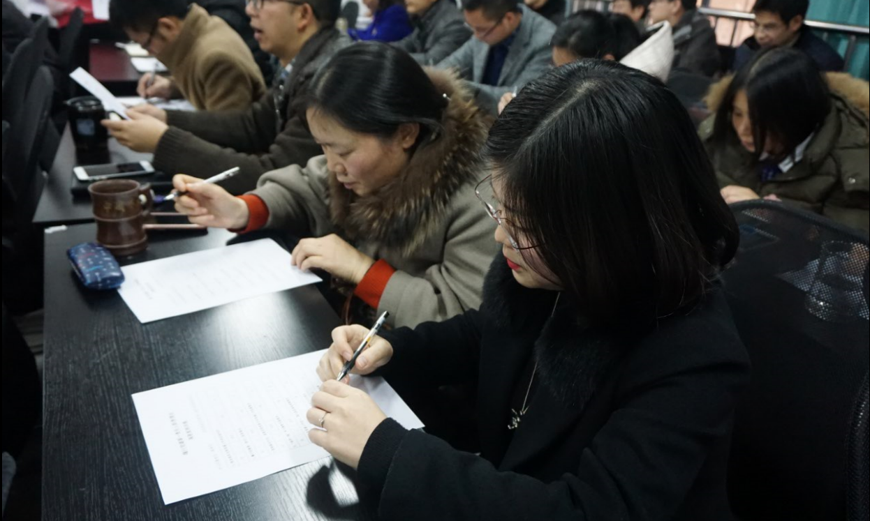 按照会议程序,全体参会教职工以认真负责的态度通过投票形式对公司党委班子及成员履行岗位职责情况、落实党风廉洁建设责任制和党组织书记履行党建第一责任人职责情况进行满意度测评。