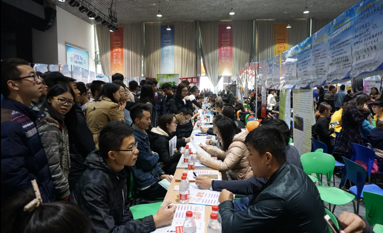 11月10日,成都校区麦立方哈哈体育展区人头攒动,省内外近80家企业携750余个就业岗位来学院参加2017届毕业生双选会,招贤纳士。