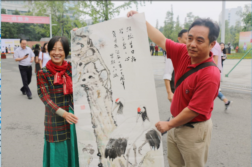 群峰拱立,众水环流,青衣江,老板山……带着对青春的回忆,他们行走在菁菁校园里,感受着母校日新月异的变化,谈论着彼此的那些青葱岁月,一转身便收到数十年不见的老友一声突如其来的问候,一个久别重逢的拥抱,一句暖心的调侃……拍照、握手、拥抱等早已经让校园变成了一片欢乐的海洋。