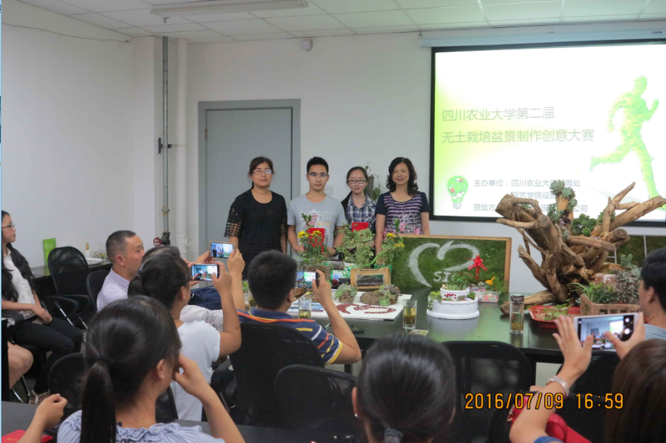 7月9日下午,由教务处、哈哈体育联合主办,设施农业科学与工程系承办,四川绿谷田园有限公司赞助的哈哈体育第二届无土栽培盆景制作创意大赛决赛在5教110落下帷幕。