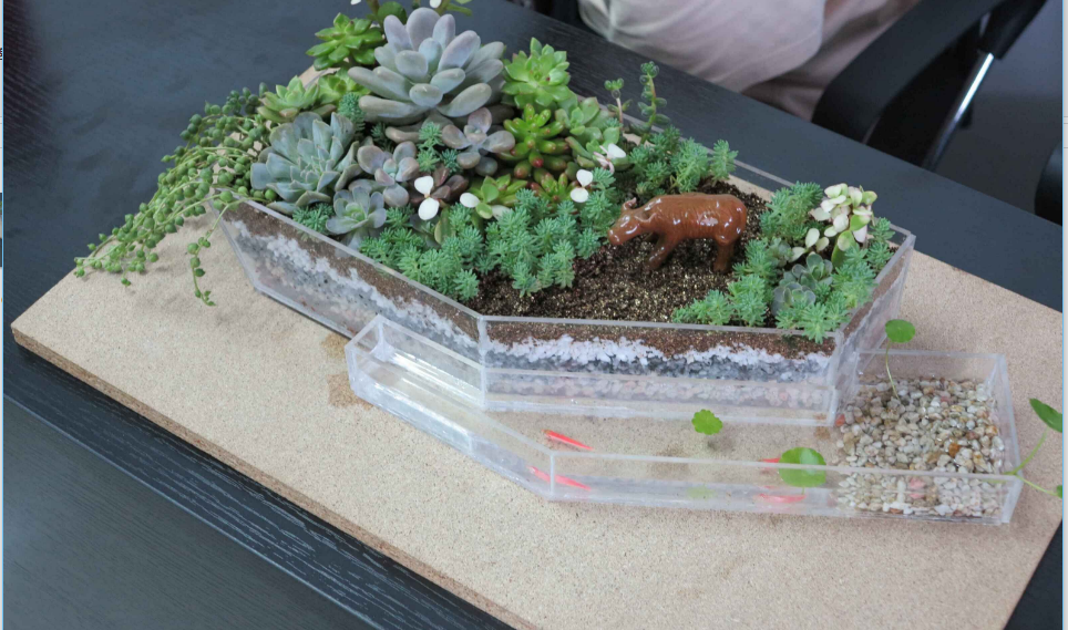 在无土栽培的容器类型选择方面,他们根据园艺植物种类及创意栽培效果或选取玻璃容器、塑料容器,或选择陶瓷、瓦盆等;在基质类型选择方面,他们或选择有机基质:泥炭、秸秆、锯末等,或无机基质:蛭石、炉渣、彩色塑料颗粒等,或混合基质:无机混合、有机混合、有机与无机混合;或水培等。在作品创作方面,有的作品在枯木上进行多肉植物的无土栽培,结合道法诠释了人生中的“枯木生花”;有的作品在一套茶具里进行了微景观的制作,将茶具中融入了植物的生机;有的作品将种子拼成校徽的图案,庆祝母校110周年华诞;有的作品则以图书馆模型作为栽培容器呈现对图书馆的情意……