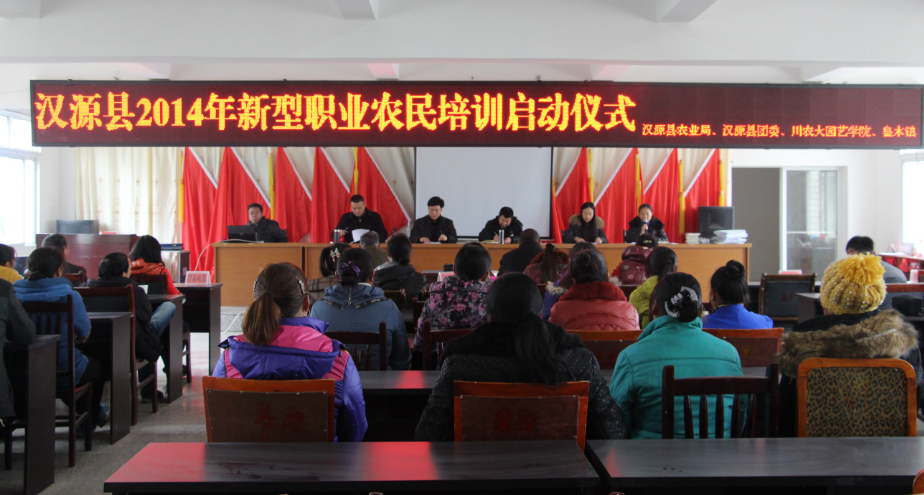 新闻摘要:12 月 2 日,学院承接的汉源县 2014 年新型职业农民培训项目培训班开班仪式在汉源县皇木镇举行。学院副经理、项目负责人汪志辉教授,汉源县农业局副局长周永清,团汉源县委副书记曹婕,皇木镇党政领导和汉源县科教股、部分乡镇代表和承担教学任务的部分老师