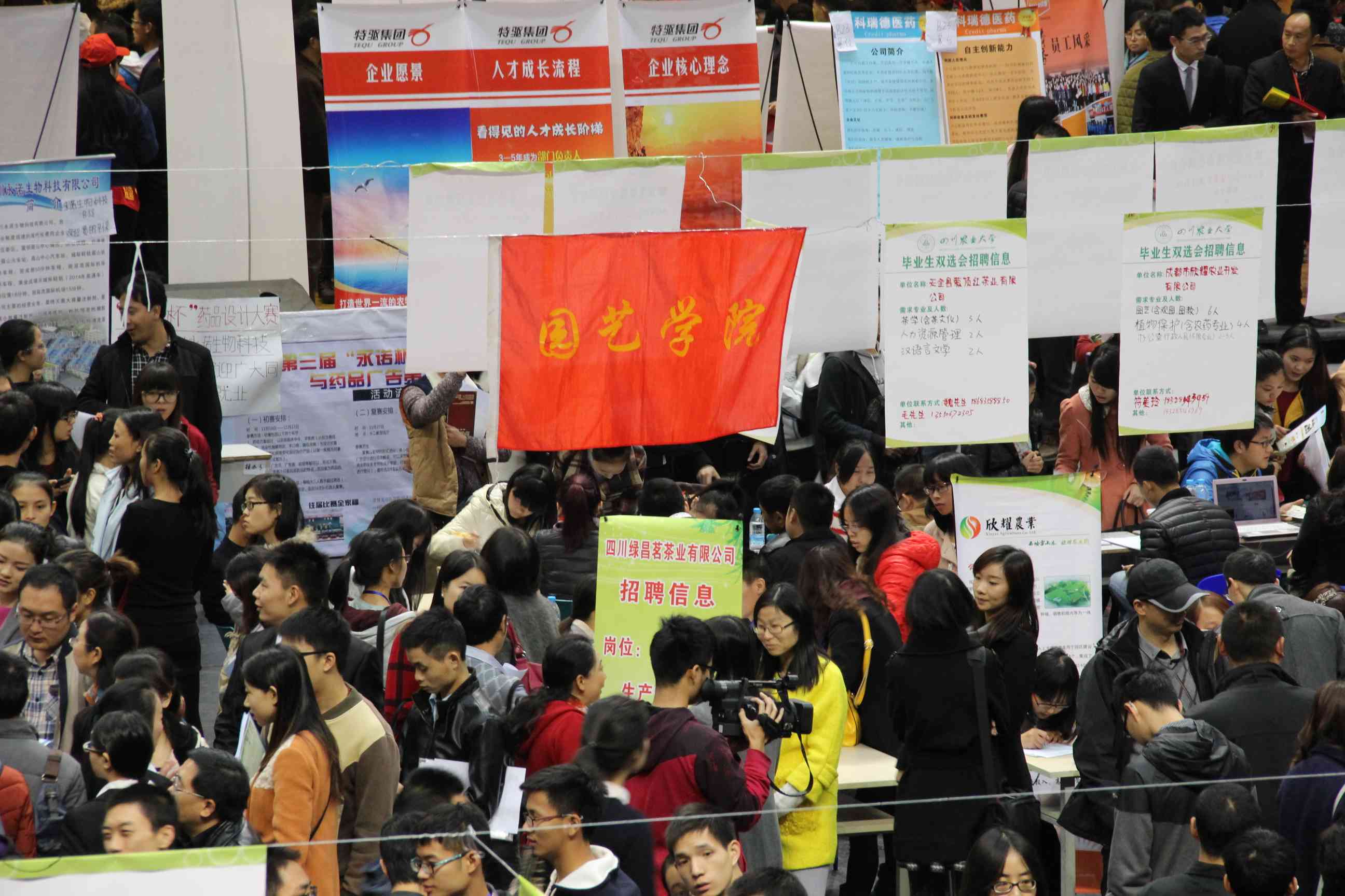 11月12日,公司2015届毕业生首场双选会在雅安校本部体育馆拉开帷幕。宜宾川红集团、成都森禾现代农业科技有限公司、云南白药天颐茶业有限公司、陕西海升集团等43家企业面对公司招贤纳才。