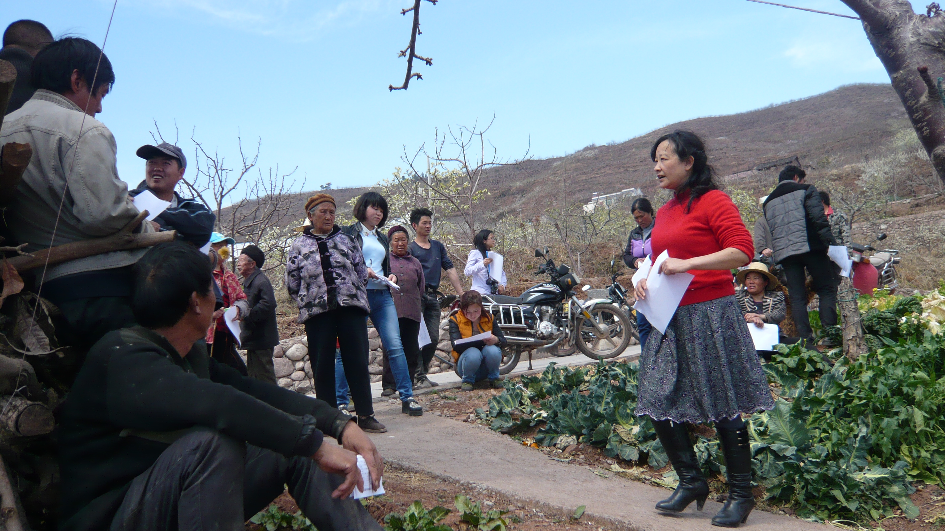 在汉源和彭山,吕秀兰受邀对当地农民进行甜樱桃和葡萄栽培技术培训,并深入田间地头进行了亲自示范指导。