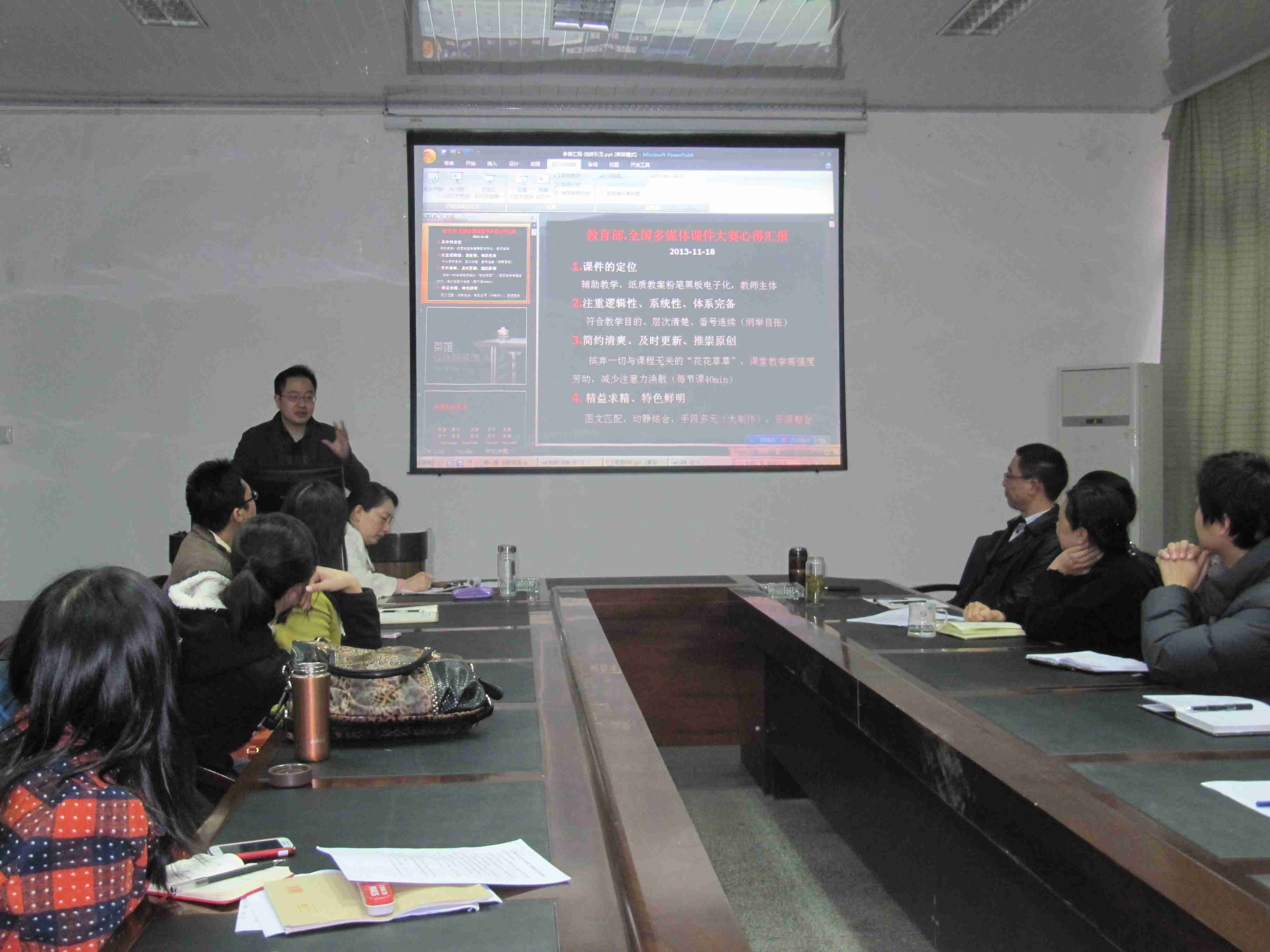 会上,荣获2013年第十三届全国多媒体课件大赛三等奖的茶学系李品武副教授就自己的多媒体课件参赛作品《茶馆设计与装饰》向大家作了交流,与大家分享了收获与感受。