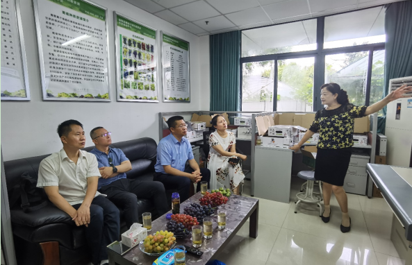 7月14日,顶着炎炎烈日,冒着酷暑,科技部国家科学技术奖励工作办公室业务协调处处长、驻派屏山县挂职的屏山县委副书记李小图来到位于公司成都校区5教112的葡萄资源平台实验室检查指导。学校副董事长刘登才教授,公司党委书记袁志香副教授及平台主任、果蔬专家吕秀兰教授和团队成员王进副教授、林立金副教授、熊博博士和徐堃富等参加调研活动。