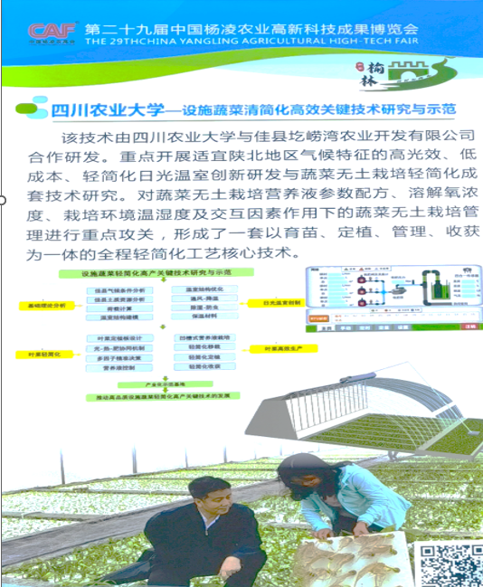 9月15日,以“创新·合作与粮食安全”为主题的第29届中国杨凌农业高新科技成果博览会在“中国农科城”陕西杨凌开幕,由学院蔬菜专家郑阳霞教授主持,副经理孙勃教授和设施农业科学与工程系主任卢威副教授主研的中央引导地方科技发展专项“设施蔬菜轻简化高产关键技术研究与示范”项目成果参加现场展览。