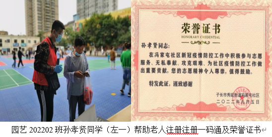 特殊时期,疫情就是命令,防控就是责任。面对突如其来的新冠疫情,作为学院2022级新生,虽线下到校被推迟,但园艺202202班同学们确积极响应当地疫情防控部门的号召,投身疫情防控一线,用实际行动践行老员工的责任和担当,用实际行动上好大学“第一堂实践课”