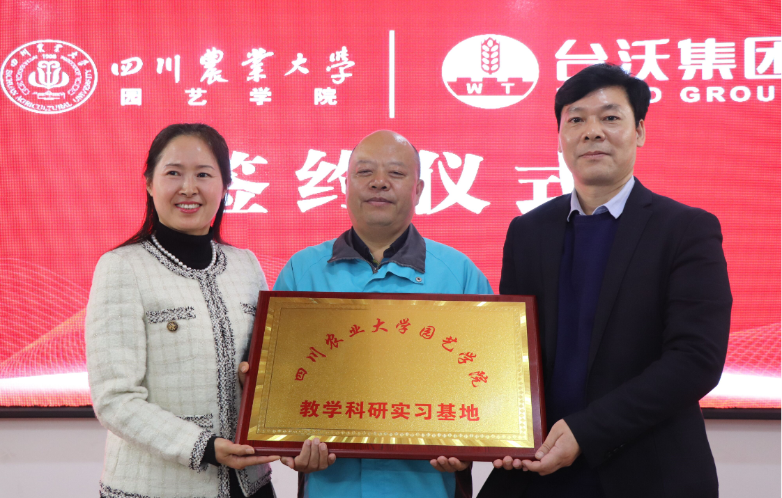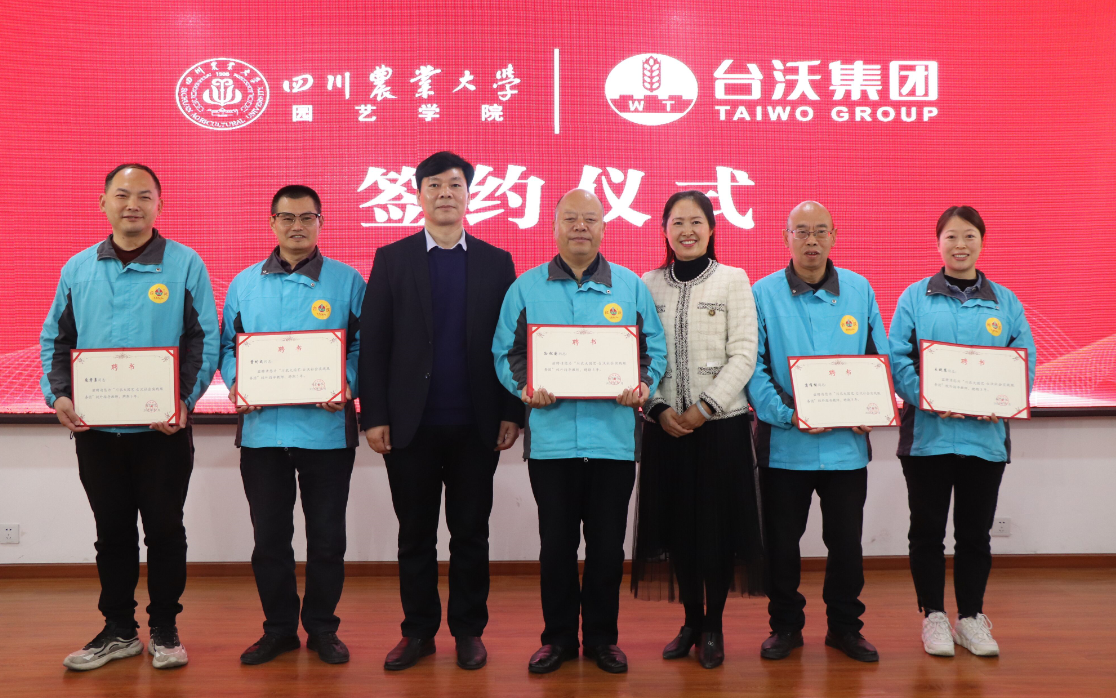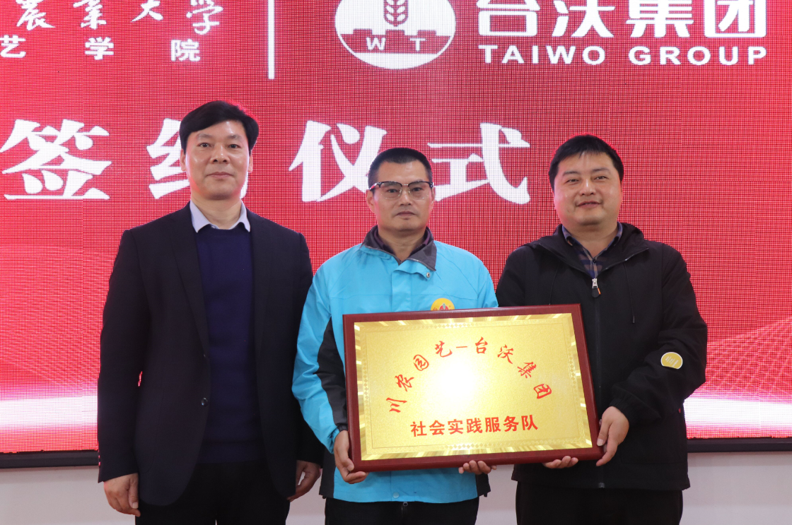 汪志辉和孙松国分别作为双方代表签订了哈哈体育-台沃集团教学科研实习基地共建协议,汪志辉、袁志香和孙松国共同揭牌。会上,龚荣高宣读《关于成立台沃园艺社会实践服务队的通知》及《关于聘请台沃集团技术专家为台沃园艺社会实践服务团指导教师的决定》。汪志辉为社会实践服务队授牌,并同袁志香一起为学院受聘校外导师颁发聘书。