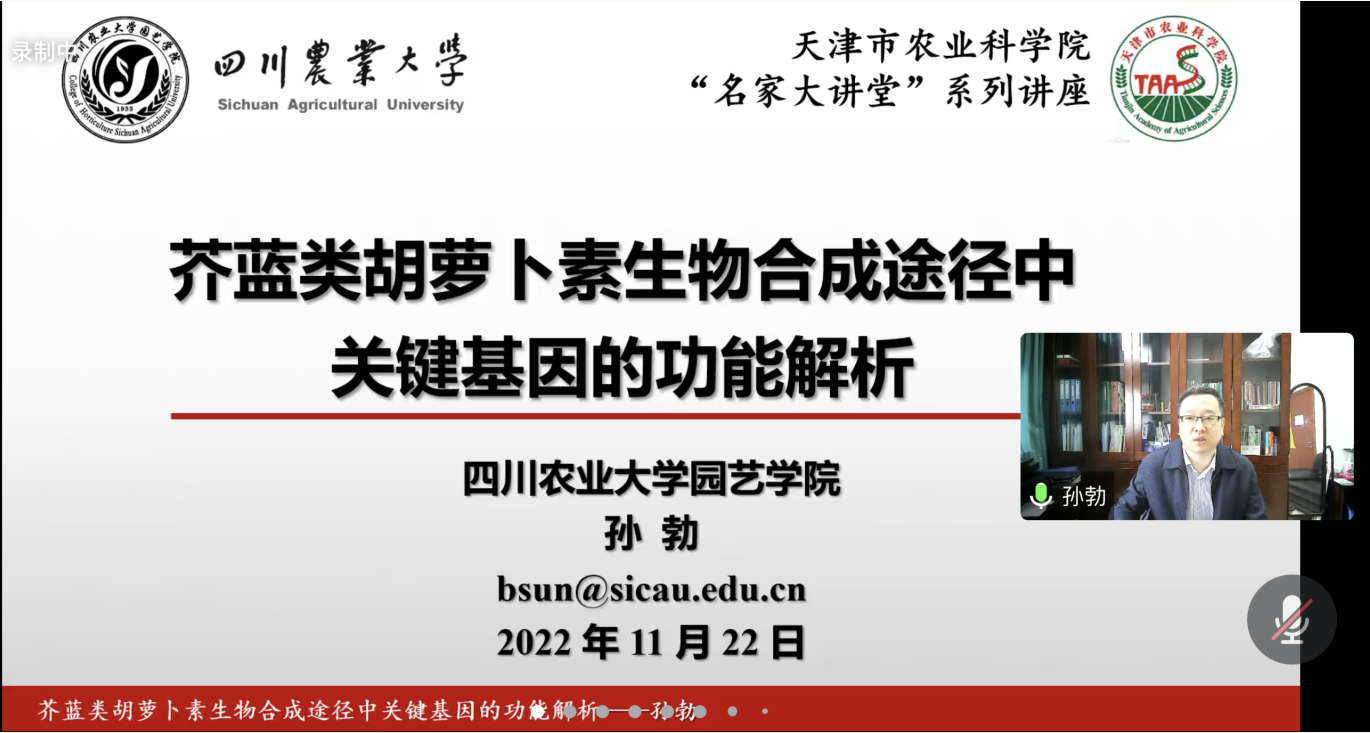 孙勃教授作了题为《芥蓝类胡萝卜素生物合成途径中关键基因的功能解析》的学术报告,介绍了蔬菜作物中类胡萝卜素研究进展,并重点汇报了课题组近年来在芥蓝CRTISO等类胡萝卜素生物合成关键基因功能上的研究成果,同时向参会专家介绍了公司哈哈体育的科研情况及个人担任的SCI期刊编委等学术兼职工作,报告得到与会人员的一致认可,进一步提升了学院在国内园艺学科的学术影响力。