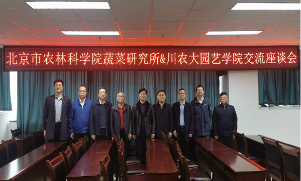 温常龙详细介绍了北京市农林科学院蔬菜研究所的发展历史、特色优势、重要研究领域,并重点分享了蔬菜种业攻关、栽培技术示范、设施工程建设等方面的经验。他表示北京市农林科学院蔬菜研究所和学院在蔬菜学研究方面有很大的合作潜力,希望两单位在“十四五”期间开展更紧密、更深层次的交流合作。会上,双方就蔬菜种业、栽培技术、设施建造及智慧化管控等方面进行了深入探讨和交流。