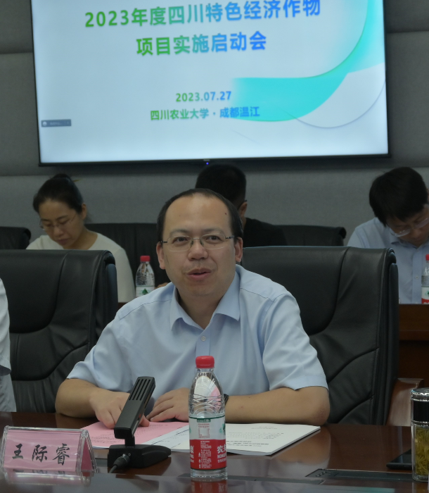王际睿对各位参会领导和专家表示热烈欢迎,表示学校作为项目组长单位,将全方位认真贯彻并落实农业农村部《关于做好开展农业重大技术协同推广计划的通知》以及四川省农业农村厅《关于做好2023年度农业重大技术协同推广计划试点工作的通知》相关要求,在省农业农村厅相关部门指导下,与兄弟单位紧密协同,论文写在大地上,高质量完成任务目标,并全方位提供技术、智力、人才保障,会同学校财务部门监管好专项资金专款专用。