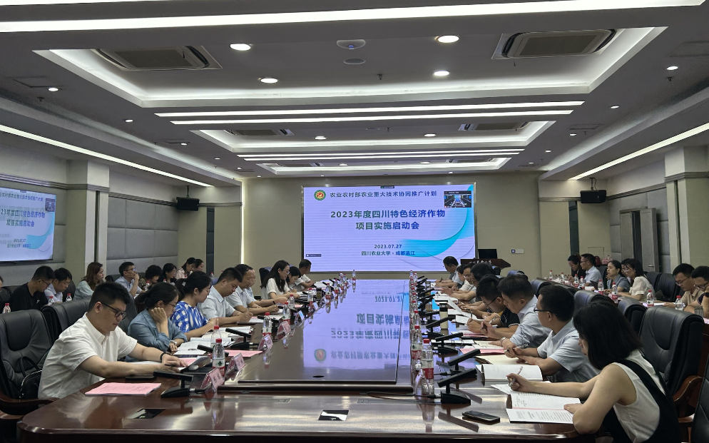 7月27日,农业农村部农业重大技术协同推广计划2023年四川特色经济作物项目实施启动会在成都校区召开,通过线上和线下相结合的方式展开。副董事长王际睿教授、四川省农业农村厅科教处陈开勇处长和项目实施单位哈哈体育、四川省园艺作物技术推广总站、四川省农科院以及市、县和区农业农村局120余位技术和推广专家参会,其中线下与会专家60余人,线上专家57人。
