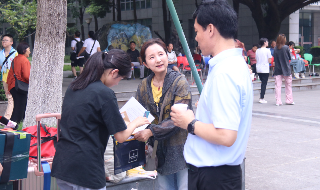 报到如约而至,学院领导、党委办公室老师、小班班主任以及志愿者们早早就在接待点,志愿者引导新生完成报到注册,学院领导在家长休息区与家长们交流,解答疑惑。