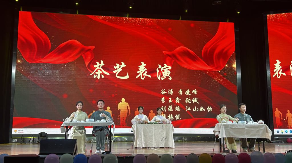 晚会在特别制作的视频和悠扬的歌声中拉开序幕。乐队表演的《New Boy》与《爱的飞行日记》作为开场节目,极大地调动起现场观众的热情,现场氛围活跃而热烈;茶艺表演队带来的《太姥山中出白茶,一杯在手远浮华》道出了福鼎白茶中的极品——太姥银针的由来,向同学们展示了盖碗和玻璃杯等专业茶艺手法,乐曲悠扬,故事婉转,赏心悦目;《One of my business》和《Unforgiven》两支流行舞节奏欢快,将活动现场气氛又掀上高潮;舞蹈串烧融合了中国舞、拉丁舞和巴基斯坦舞,是多元文化的精彩碰撞;2023级新生带来的歌曲串烧悦耳动听,动人心弦;满江员工戏曲社的《神女劈观》舞姿曼妙轻盈,与情绪饱满的唱腔完美结合,层层递进,将神观仙女保护村民挺身而出的传奇故事娓娓道来。压轴节目《我自豪我是川农人》,一声声铿锵有力的朗诵表达了大家对川农的热爱,对传承新时代“川农大精神”和对投身农业的决心,也表达了大家对建设农业现代化的信心。作为新农人,一定牢记兴中华之农业的初心和使命,学好本领,肩扛责任,为建设社会主义现代化强国和一流农大不断贡献青春力量和园艺力量。