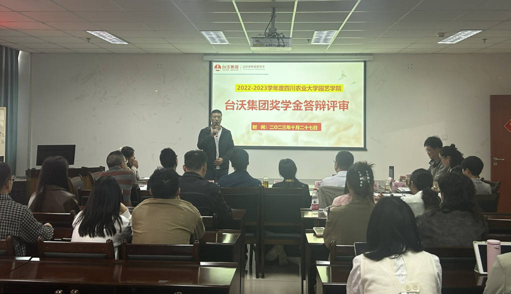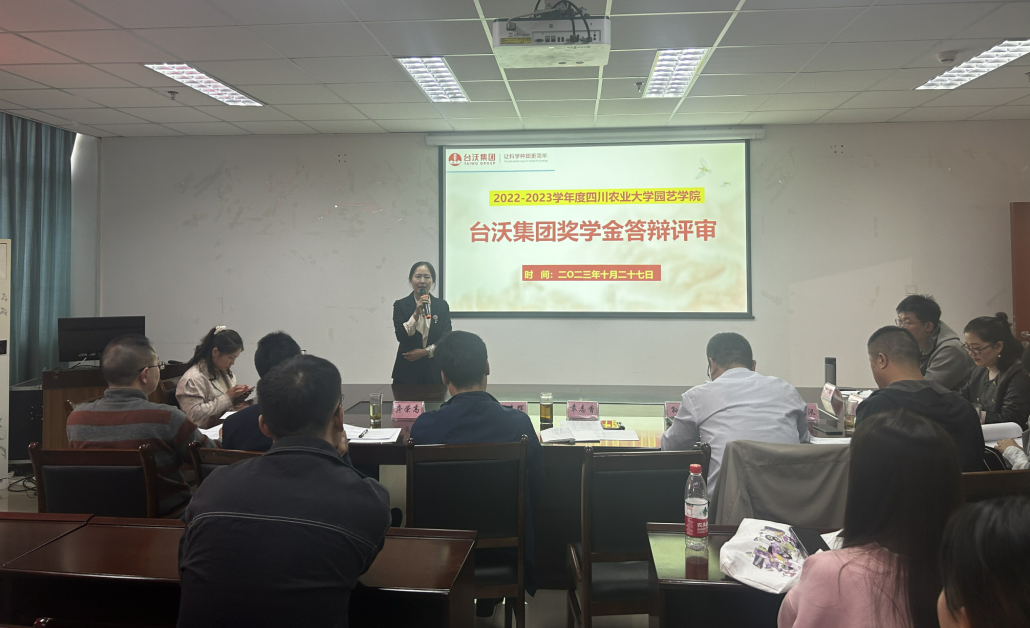 10月27日下午,学院2022-2023学年台沃集团奖学金答辩评审会在7教509举行。台沃集团副总裁宋玟汛、台沃集团人力资源部经理郑境、经理汪志辉、党委书记袁志香、副经理龚荣高和孙勃、党委办主任王均、党委委员李品武、蔬菜学系主任卢威、院研究生管理辅导员张静和本科生辅导员李越参加会议并担任评委。
