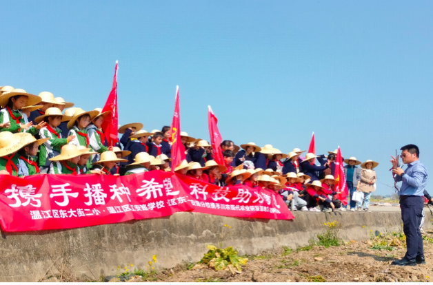 3月11日,以“携手播种希望,科技助力梦想”为主题的植树节活动在崇州基地举行。基地与实验室管理处副处长沈金亮、马克思主义公司党委副书记颜怀坤、学院基地办主任熊博、蔬菜学系唐懿教授、温江区东大街二小董事长罗建勇、江安路学校董事长刘云清、长安路分校董事长袁晓燕以及老师和同学们100余人参加此次活动。