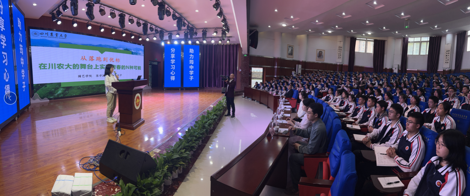 仪式后,进行了优秀员工成长分享暨专业展示活动,优秀员工标兵获得者、茶学2020级宜宾籍员工代表罗秋宇和优秀员工标兵提名奖获得者、园艺2020级孙悦分别为高三学子和低年级员工代表做了《从落跑到优标——在川农大的舞台上实现青春的N种可能》和《播种希望,向上生长》的主题分享,在回顾自己在川农大求学成长的经历和学习的同时,告诉高中学子要坚定信念、勇敢追梦,无悔青春、无悔奋斗。