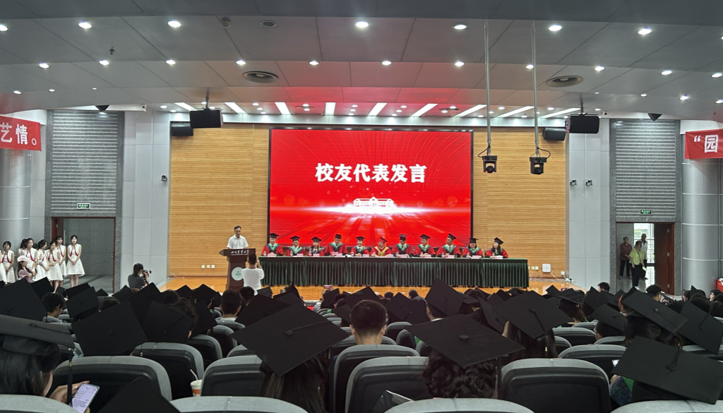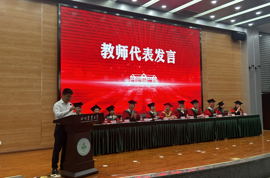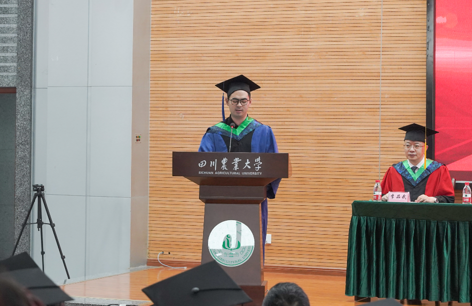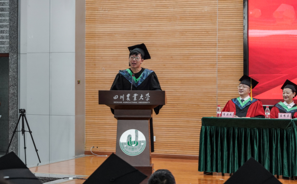 果树学系博士熊博代表教师发言。他带着同学们回顾了这三或四年的大学时光,“你们经历了疫情封校,体验了线上课堂,开展了创新训练,尝试了学术探索,走进了社会实践,也一定收获了专业知识、实践技能、创新思维和情感伴侣”,点点滴滴,历历在目。临别之际,熊博博士也向同学们表达了最美好的祝愿:奋斗从来都不晚,唯有自己定乾坤。