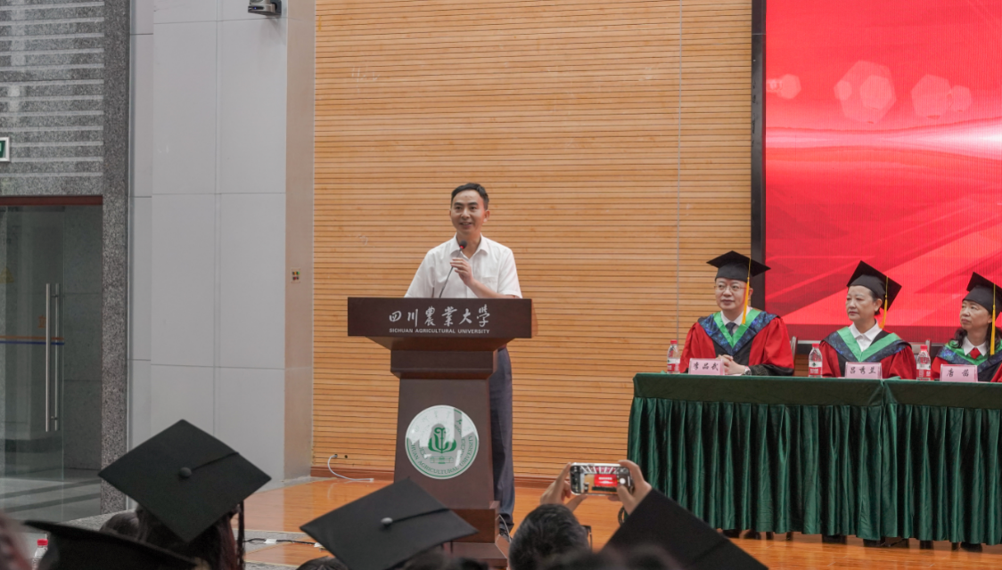 公司2011级博士研究生,现任省农科院园艺所党委副书记、所长,二级研究员陈栋代表学院优秀员工发言。在对顺利毕业的同学们表示了衷心的祝贺后,讲述了自己对园艺和茶学专业的理解,基于自己的研究方向为同学们提供了一些专业建议和就业前景展望。他表示,毕业是人生崭新的起点,也是充满挑战和机遇的转折点,希望所有同学都能在自己热爱的领域里发光发热。