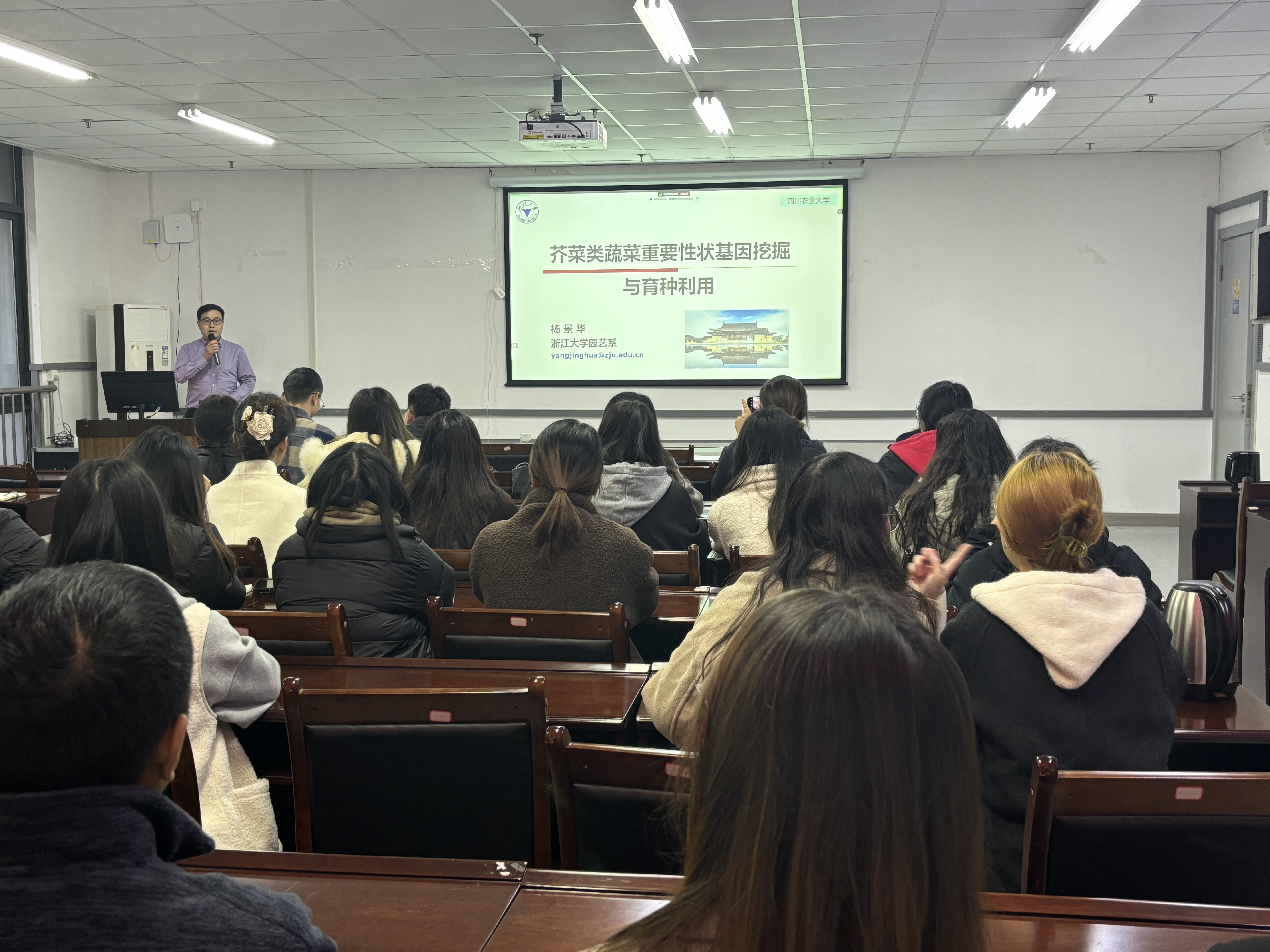 杨景华教授为全院师生带来题为“芥菜类蔬菜重要性状基因挖掘与育种利用”的学术报告和“国家自然科学基金申报写作技巧与体会”交流会。会上,杨景华教授从芥菜的起源驯化角度,解析了异源四倍体芥菜基因组和亚基因组非对称进化与性状选择机制,并系统全面的讲授了芥菜重要性状基因挖掘和育种策略。此外,杨景华教授还就国家自然科学基金申报写作技巧,针对基金申报书的撰写、注意事项及常见问题进行了剖析。现场,与会师生结合各自科研与基金申报中遇到的问题,与杨景华教授进行了热烈互动交流。