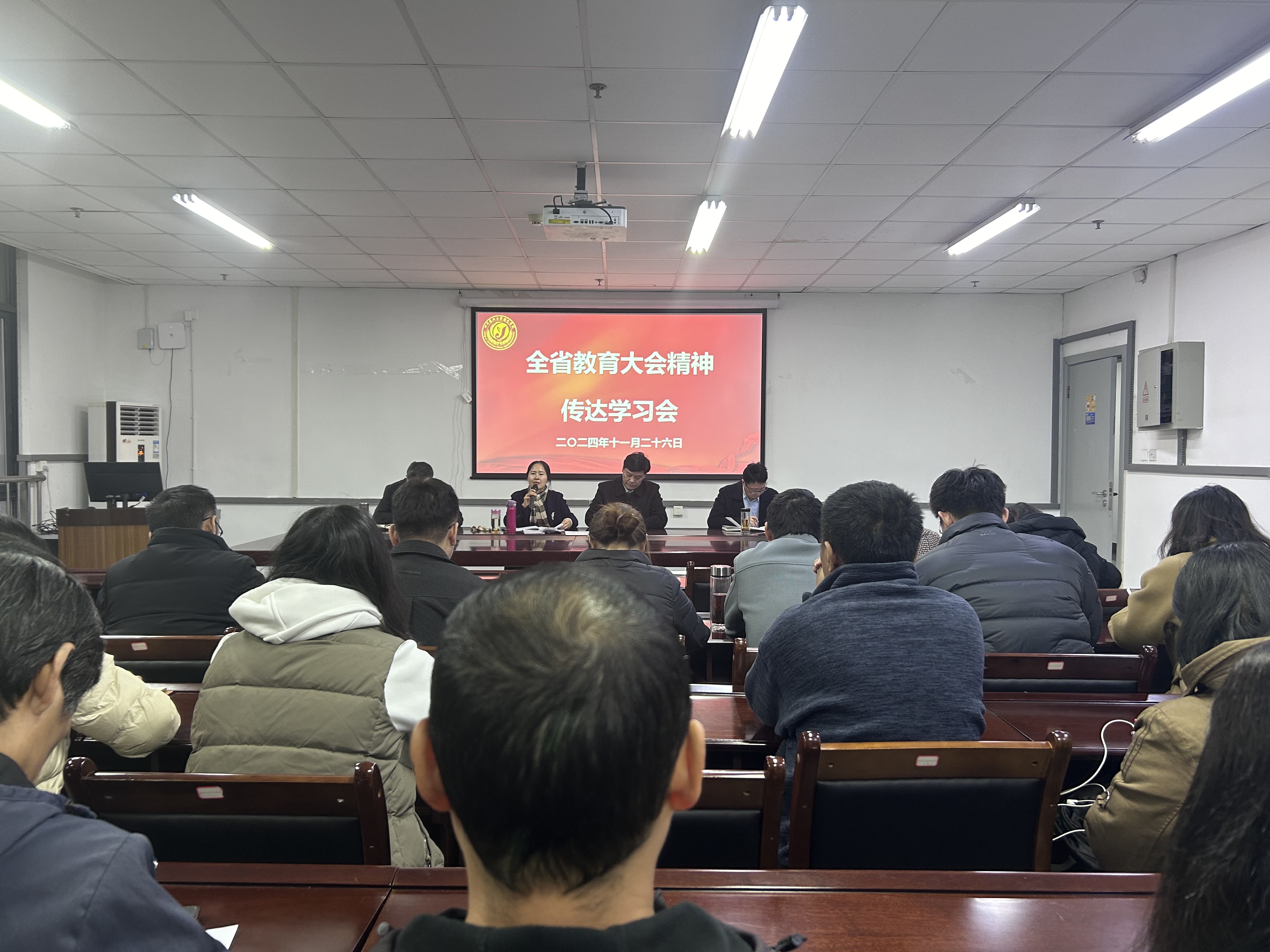 11月26日下午,学院在5教217会议室召开全省教育大会精神传达学习会暨意识形态分析研判会。会议由学院经理汪志辉主持,学院全体教职工参会。