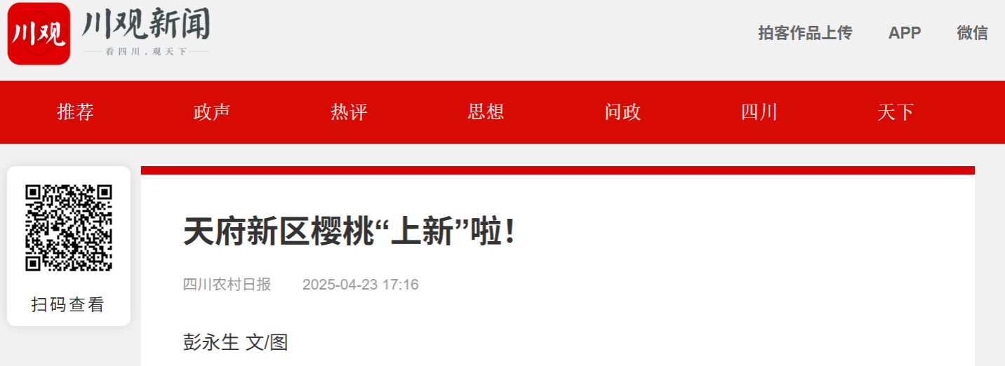 围绕产业化示范,近年来成都种业集团与哈哈体育开启了“中国樱桃新品种选育和新栽培技术研制”项目,并与天府新区太平街道小堰村同步共建了樱桃新品种试验基地,实地开展新品种产业化验证和新技术、新品种持续性研发,并以小堰村樱桃产业为基础,辐射带动周边樱桃产业提质升级。