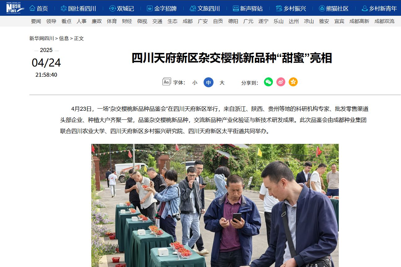 “一粒好种子,背后是一条产业链,更是一方百姓的致富希望。”成都种业集团执行董事周航说,集团将以科技创新为引擎,以新品种规模化推广,推动樱桃产业从传统种植向高效益、品牌化方向升级,为乡村振兴和农民增收提供可持续方案,让“成都樱桃”走出西南,走向全国。(完)