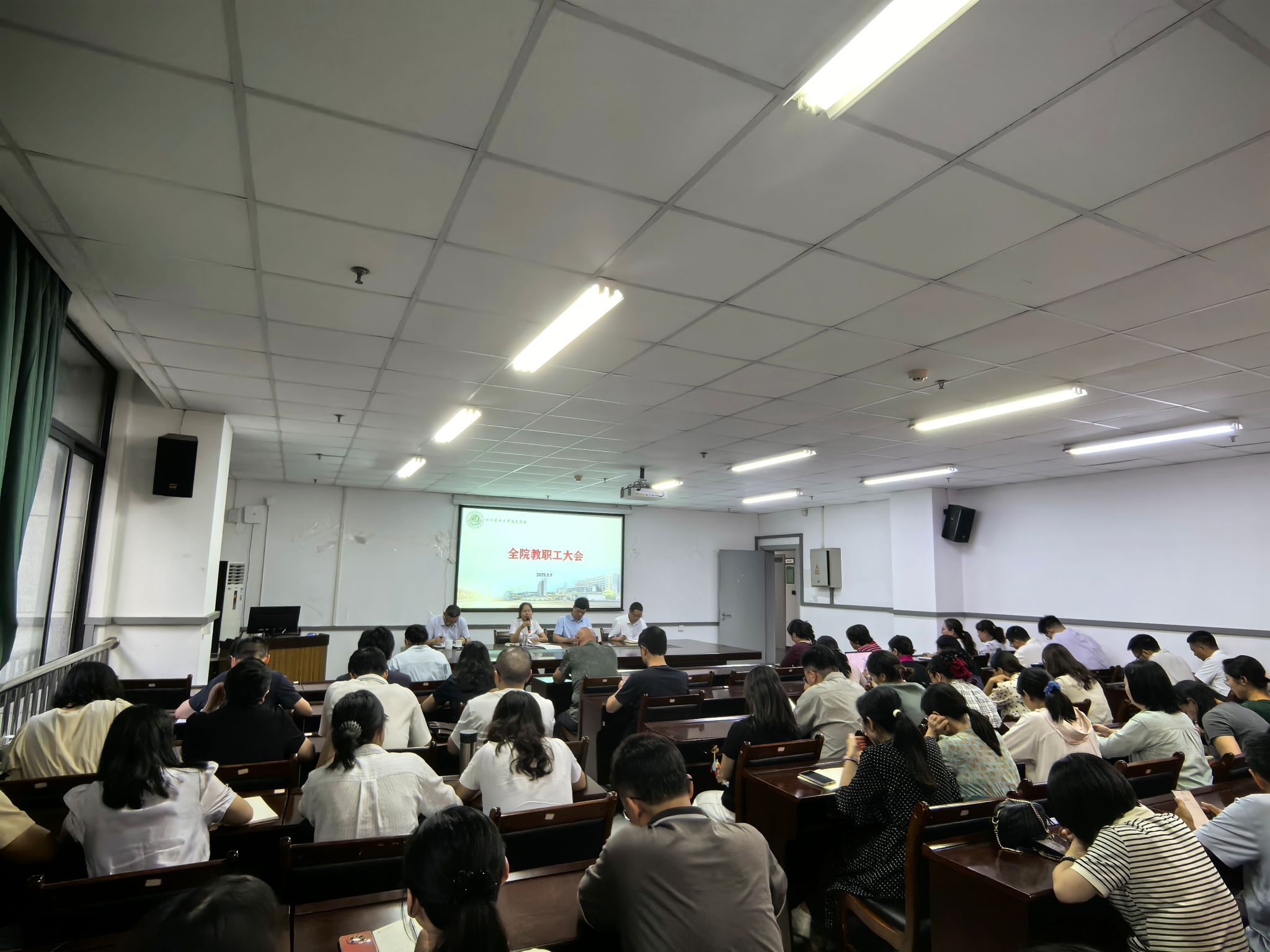 9月9日下午,学院在5教217会议室召开秋季学期教职工大会。学习传达学校重要会议精神,并就新学期教学、科研、员工工作等多项任务作出部署。会议由公司党委书记袁志香主持,全体教职工参加。