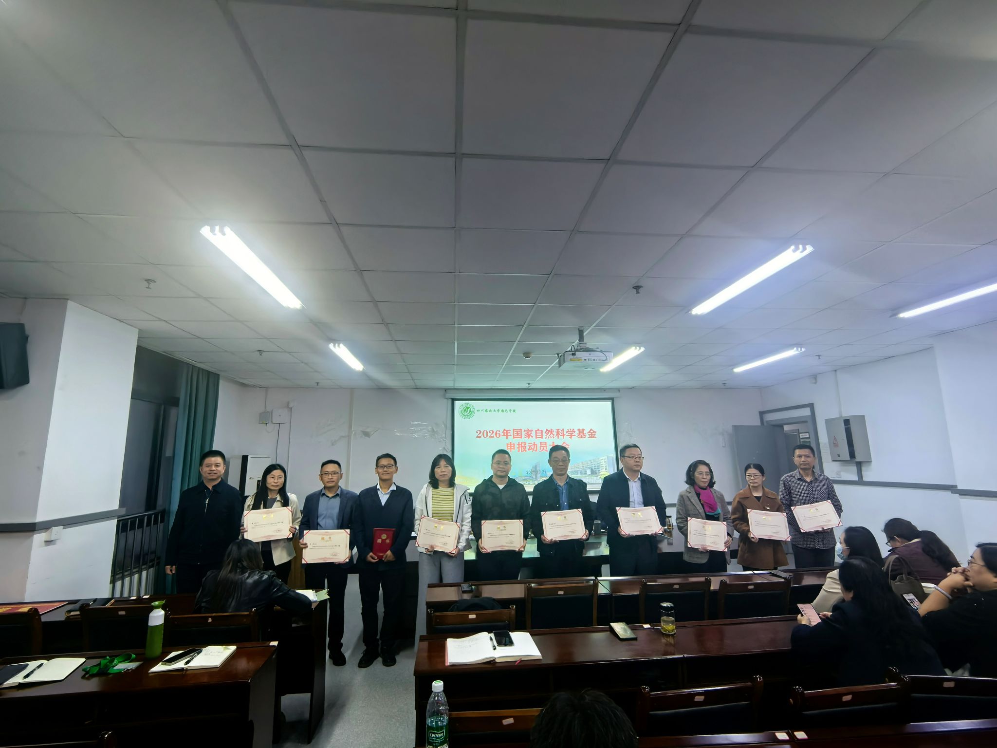 随后,学院经理汪志辉与党委书记袁志香共同为2025年度国家自然科学基金申报成功的教师颁发奖励。其中,为申报国家自然科学基金青年科学基金(C类)成功的教师发放20000元奖励,为申报国家自然科学基金面上项目成功的教师发放30000元奖励。