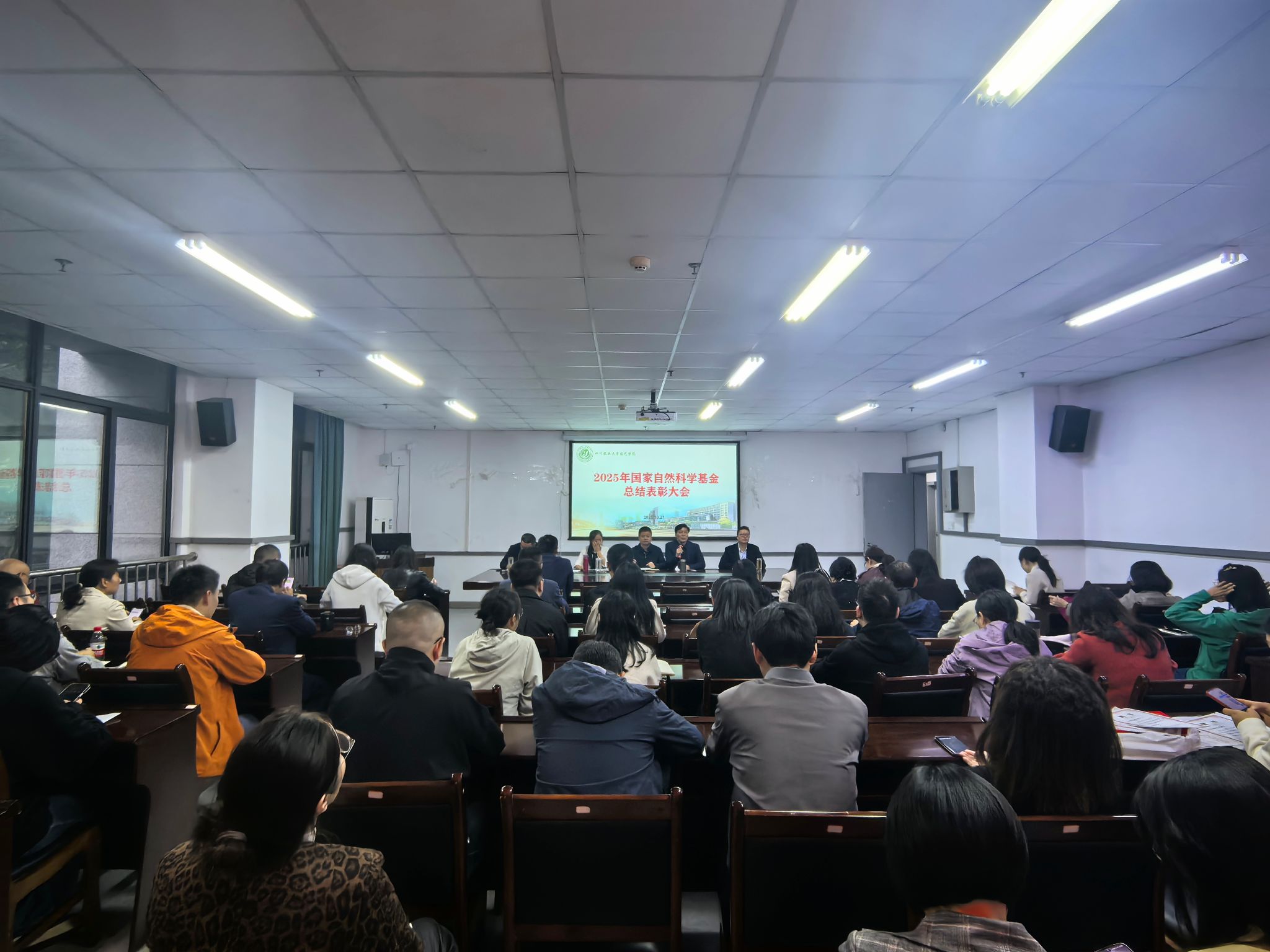 表彰结束后,杜俊波对学院老师申报2026年国家自然科学基金进行专项辅导。杜俊波结合全校基金申报及获批整体情况的分析,从选题优化、材料打磨、跨学科协作等方面,对学院2026年度基金申报工作提出针对性建议。