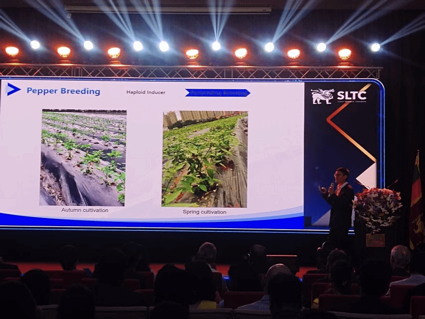 12日,国际学术大会开幕式在科伦坡班达拉奈克纪念国际会议中心举行,当地学界、驻当地使领馆、产业界约500人参会。作为主讲嘉宾赖云松在开幕式上作了主旨演讲,介绍了中国蔬菜产业发展现状,团队在辣椒和黄瓜上的研究成果和应用情况,以及在山葵、香椿、大蒜、山韭等蔬菜产业推广上的工作。在开幕式上,SLTC大学董事长Chandrika Wijeyaratne女士,向赖云松颁发了国际交流贡献奖,以表彰他在双边农业项目合作,开展线上远程课程,以及为SLTC本科生提供实验技能培训等方面的工作。